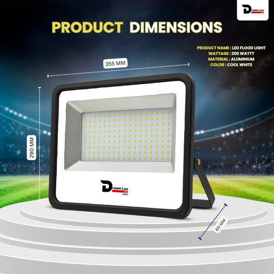 Dreamlux 200 Watt Light Down Chock | Outdoor Flood Lights IP66 Waterproof | Flood Light | Focus Lights | Ultra Bright | Aluminium Body | 85% Energy Saving,Durability (200W, Color : Cool White)