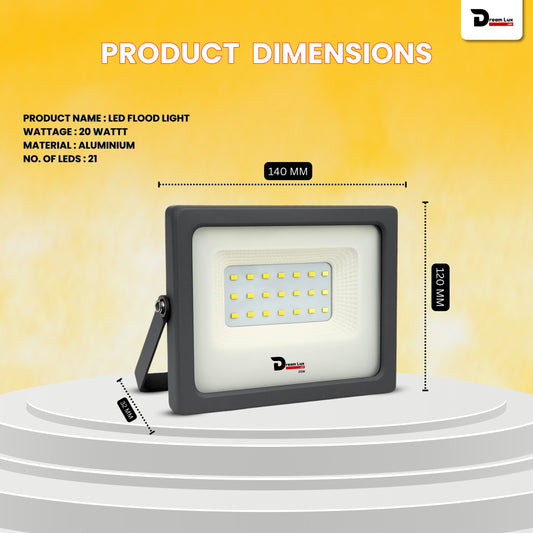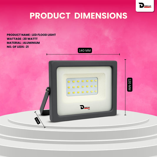 Dreamlux 20W LED Flood Light | IP66 Waterproof Indoor & Outdoor Focus Light for Decoration, Energy-Efficient Halogen Light, Lighting Fixtures for Wall & Home, Color : Cool White