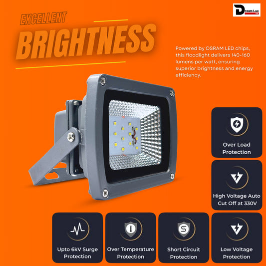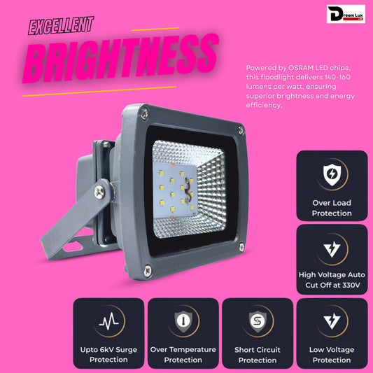 Dreamlux 50W LED Flood Light | Cool White 6500K Color Temperature LED Lamp| IP66 Waterproof 6Kv Surge Protection Focus Light for Factory, Garage, Parking, Garden, Playground & Shop (Cool White, 50 Watts)