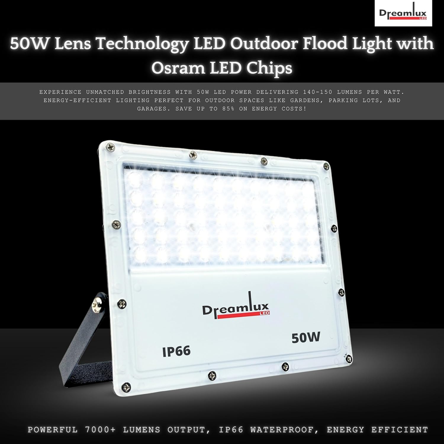 Dreamlux 50W Dusk to Dawn LED Flood Light with Lens Technology | Cool White
