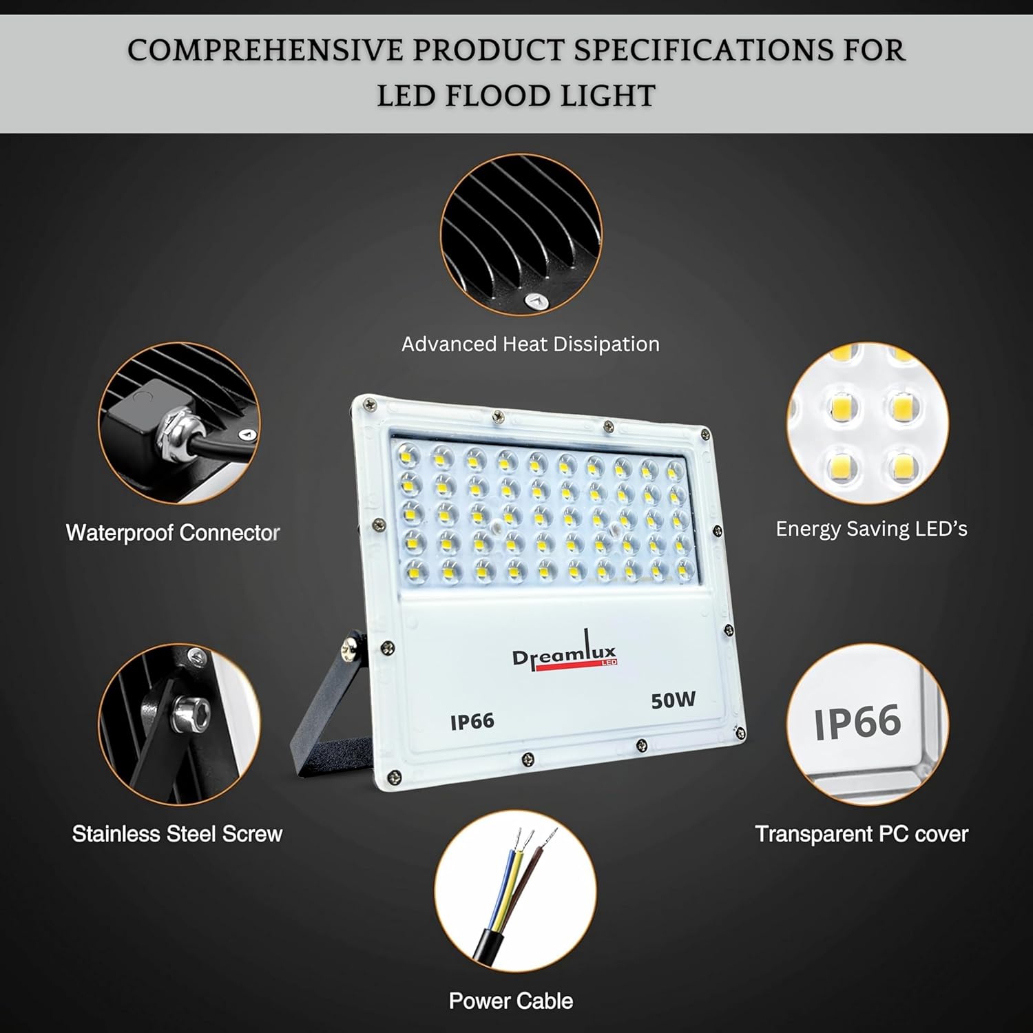 Choose the Dreamlux 50W Dusk to Dawn LED Flood Light for brighter, smarter, and sustainable outdoor lighting.