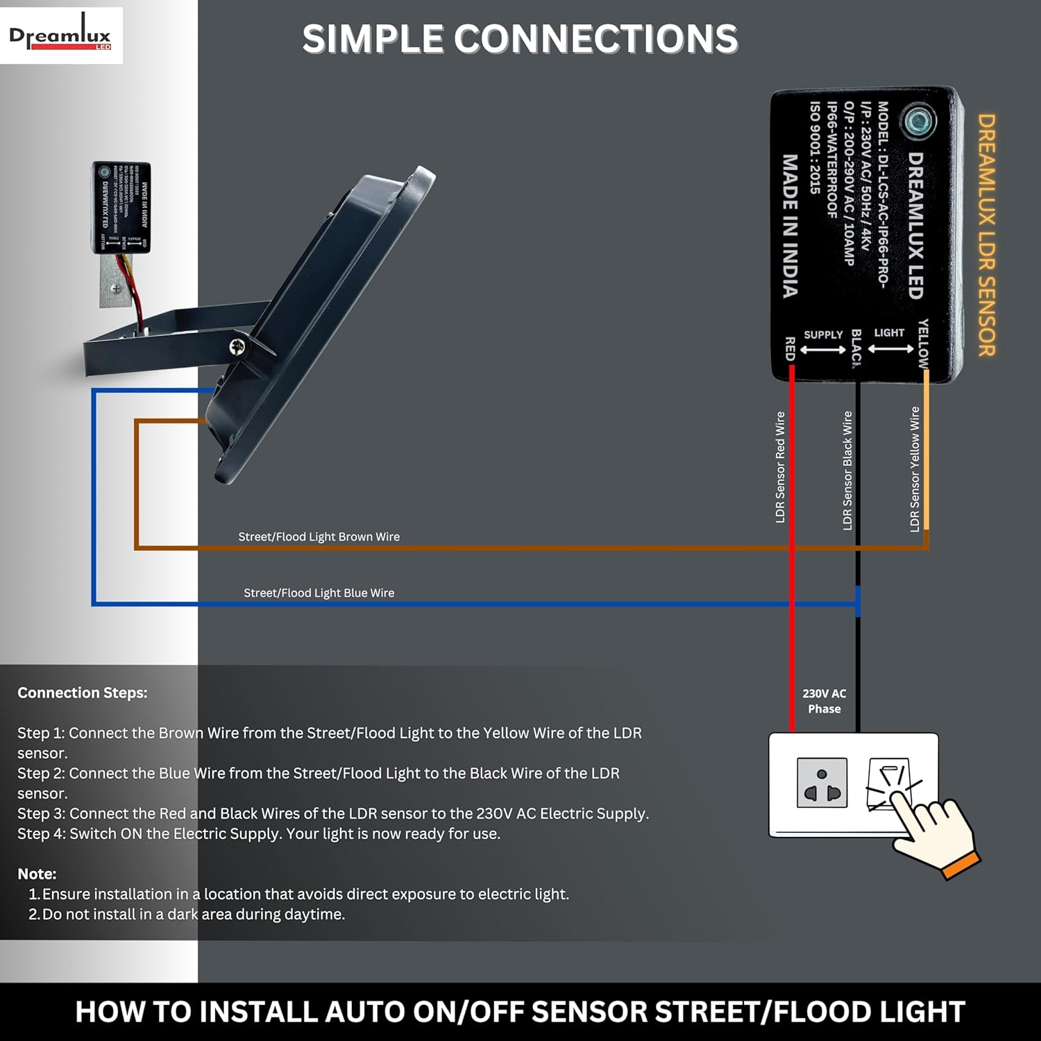 - Dusk to Dawn Functionality: Auto ON at dusk and OFF at dawn for hassle-free operation.