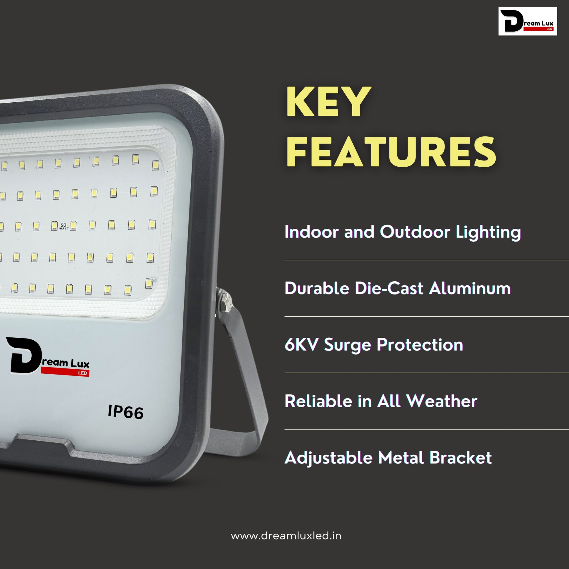 - BRIGHT LIGHT OUTPUT: Designed to deliver powerful 50W illumination with cool white 6500K light, perfect for outdoor spaces, pathways, gardens, parking areas, and large industrial or commercial setups.