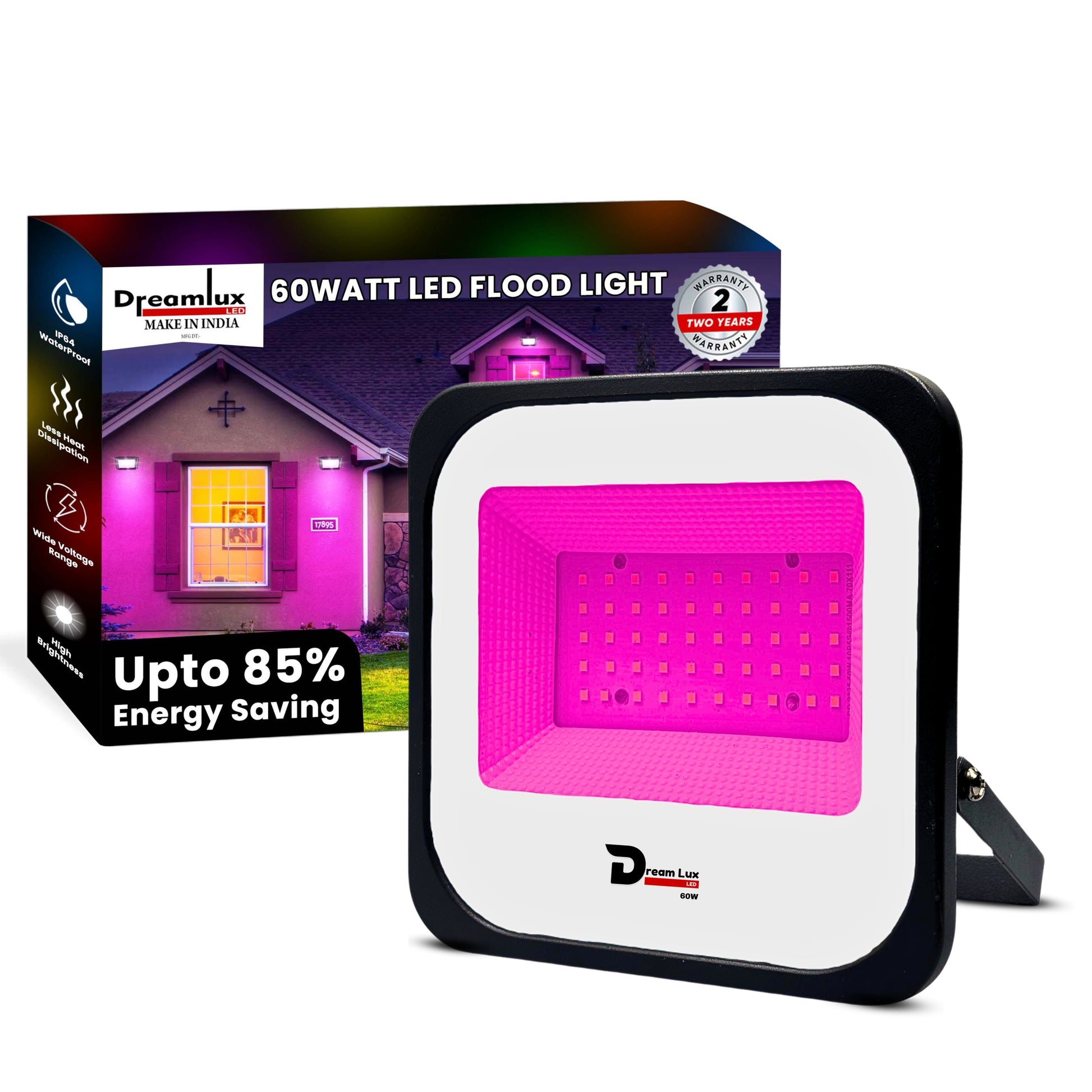Dreamlux 60 Watt Light Down Chock | Outdoor Flood Lights IP66 Waterproof | Flood Light | Focus Lights | Ultra Bright | Aluminium Body | 85% Energy Saving,Durability (60W Pink Color)