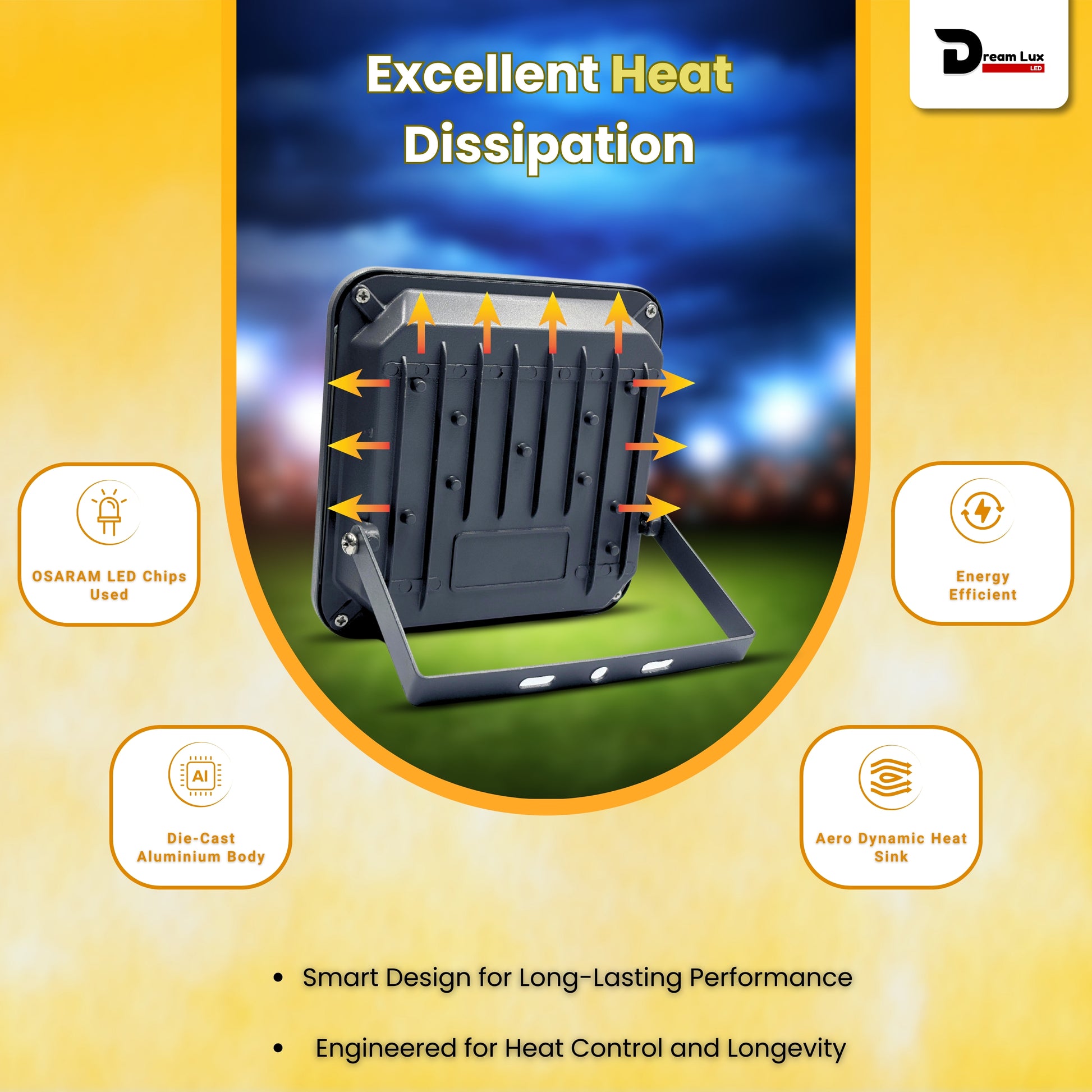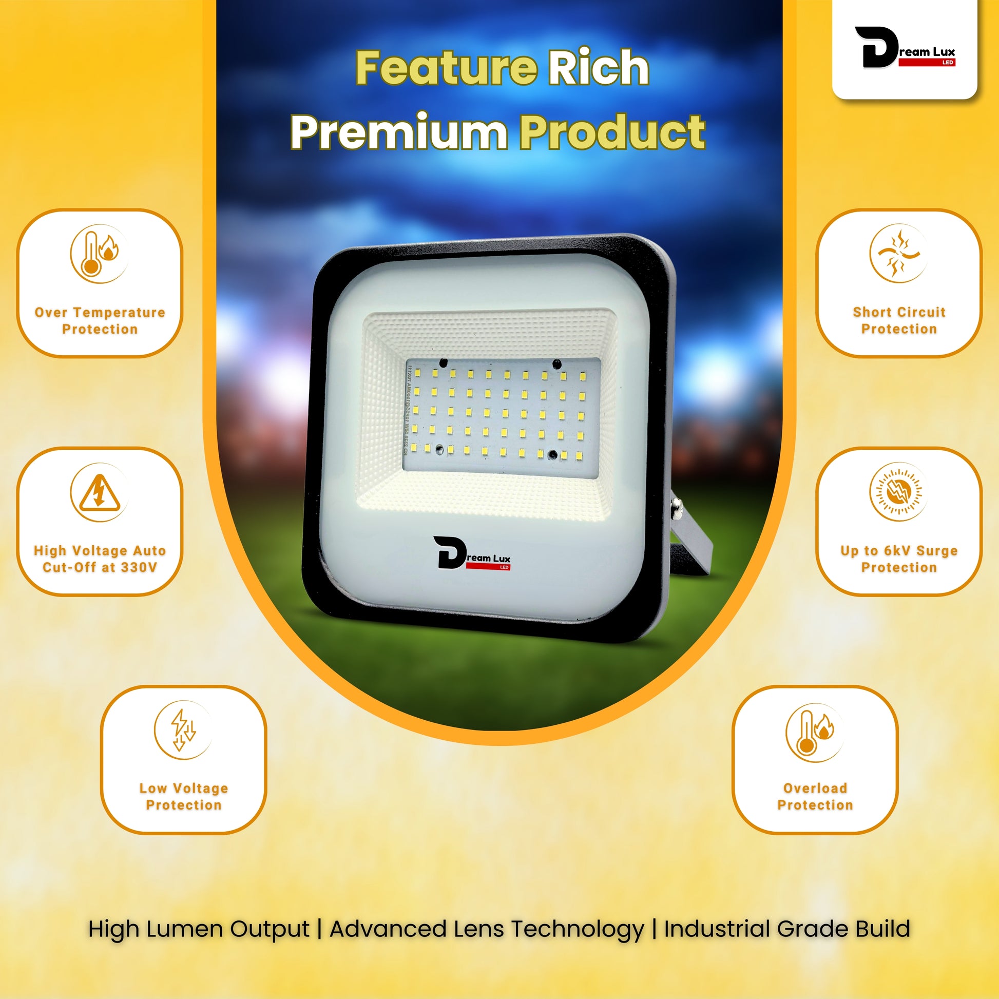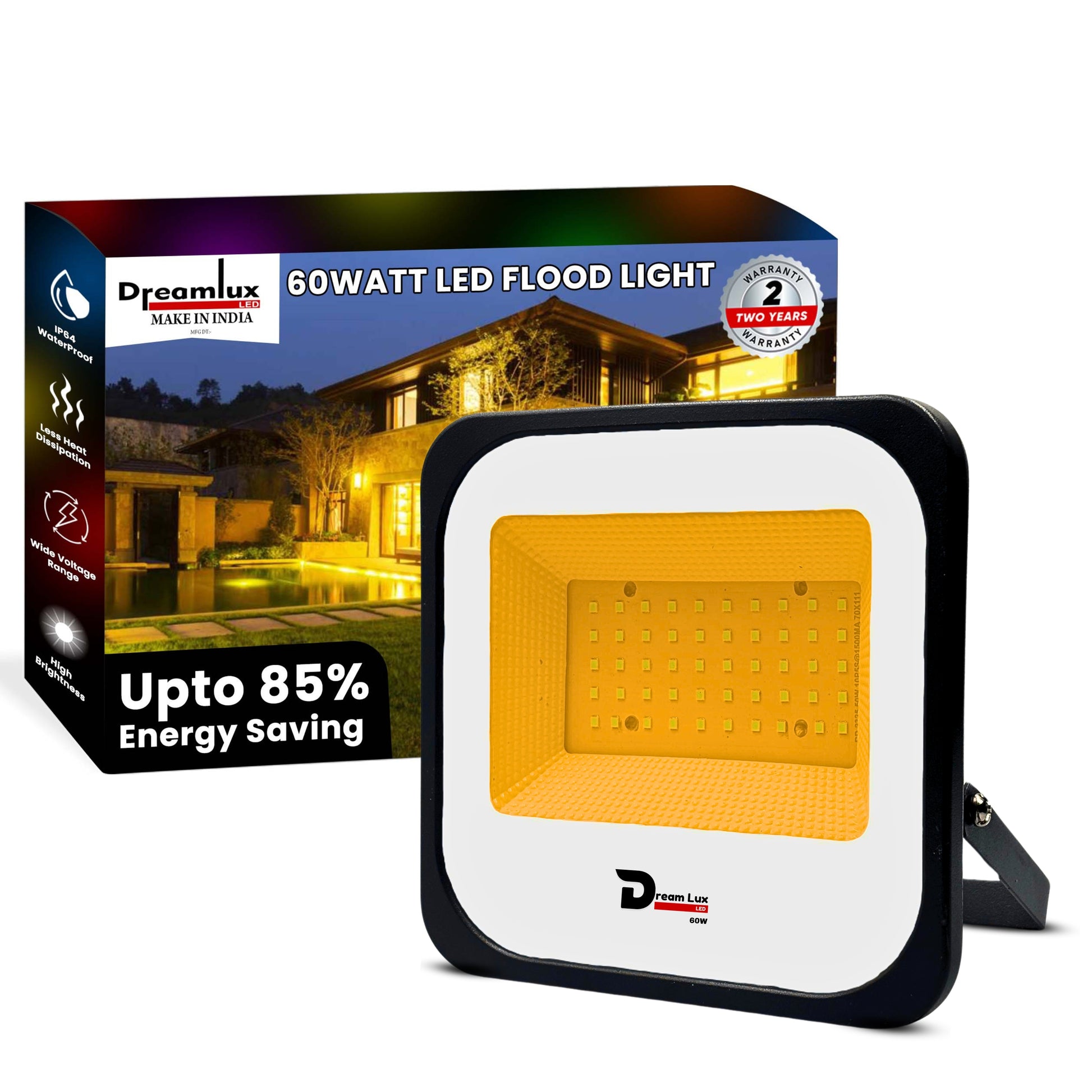 Dreamlux 60 Watt Light Down Chock | Outdoor Flood Lights IP66 Waterproof | Flood Light | Focus Lights | Ultra Bright | Aluminium Body | 85% Energy Saving,Durability (60W Warm White Color)