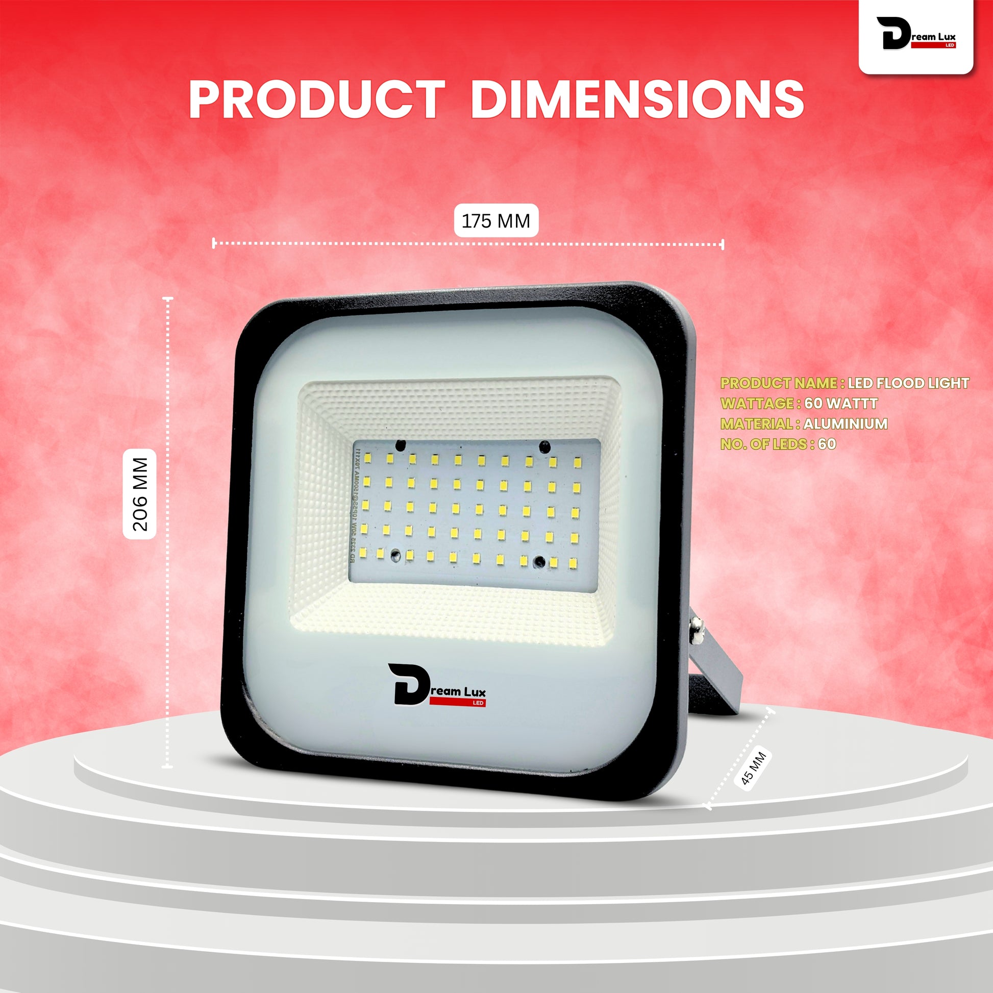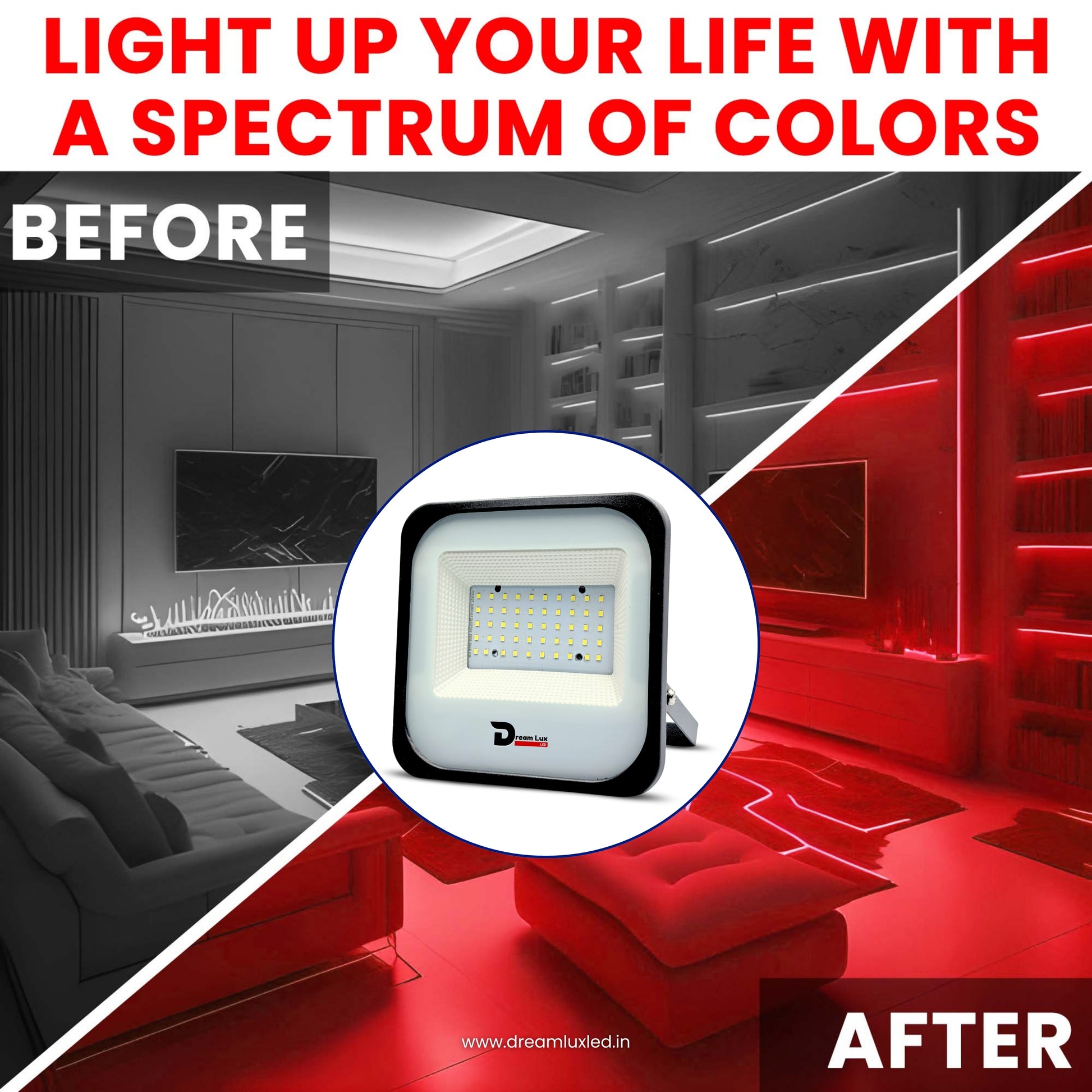 Dreamlux 60 Watt Light Down Chock | Outdoor Flood Lights IP66 Waterproof | Flood Light | Focus Lights | Ultra Bright | Aluminium Body | 85% Energy Saving,Durability (60W RED Color)
