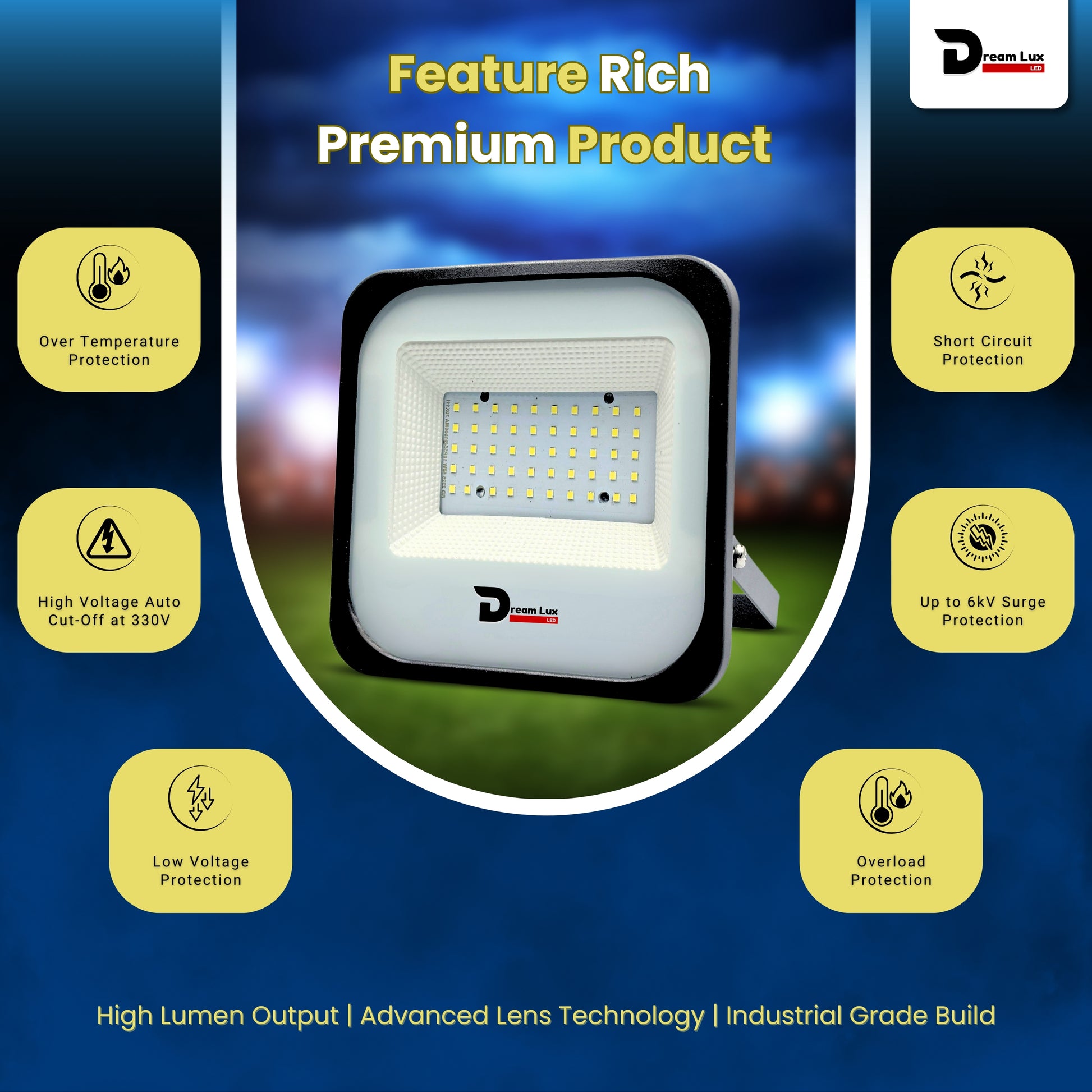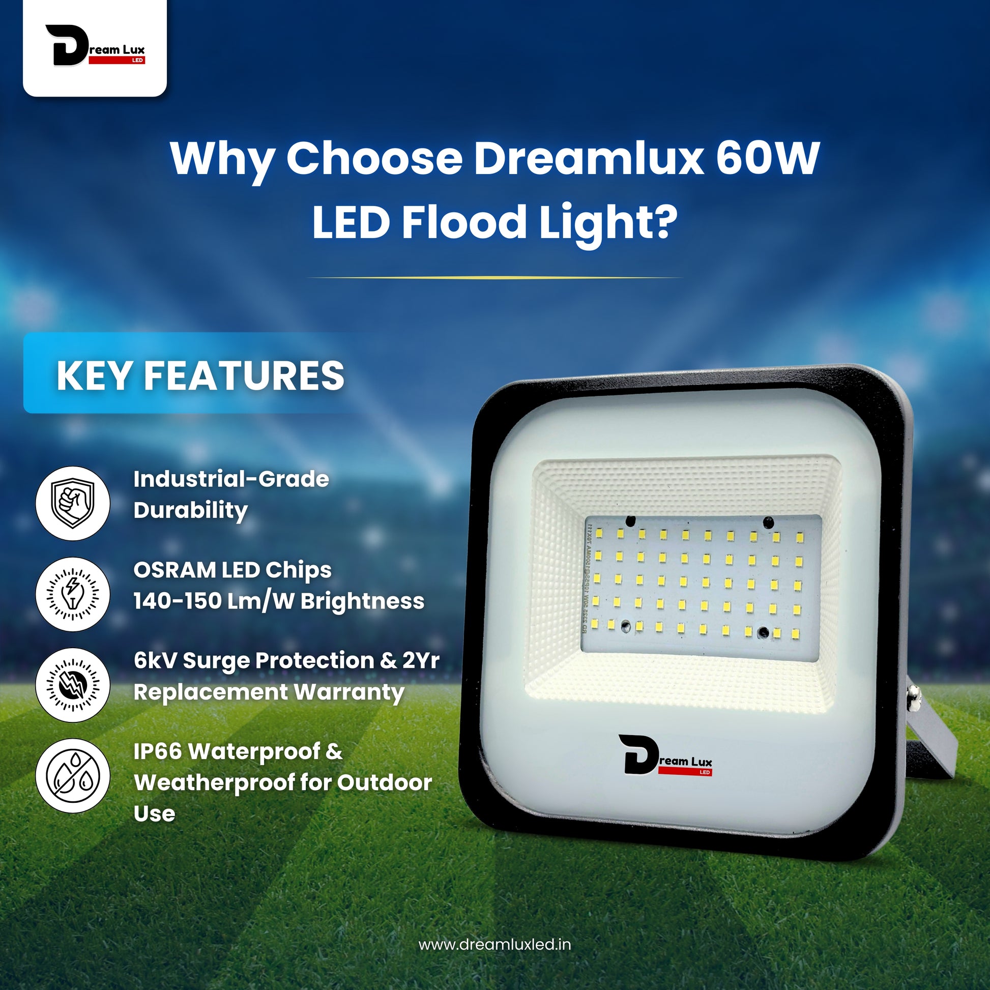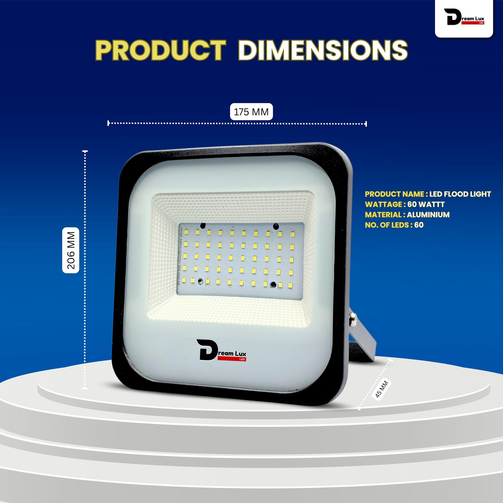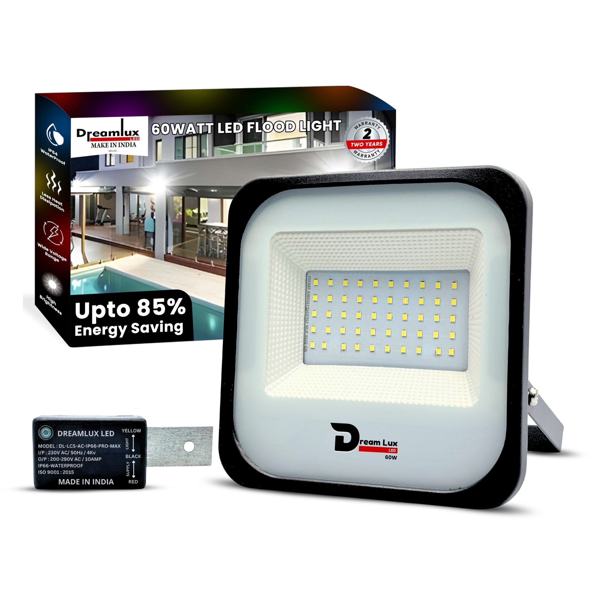 Dreamlux 60W Dusk to Dawn LED Waterproof Flood Light with Auto On/Off Day Night Sensor | BIS Approved | Aluminium Body, Color - Cool White