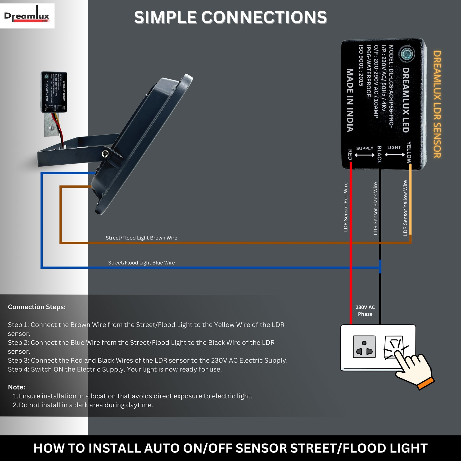 - Automatic Operation: This LED flood light is equipped with a dusk to dawn LDR sensor that automatically turns the light on at night and off during the day.