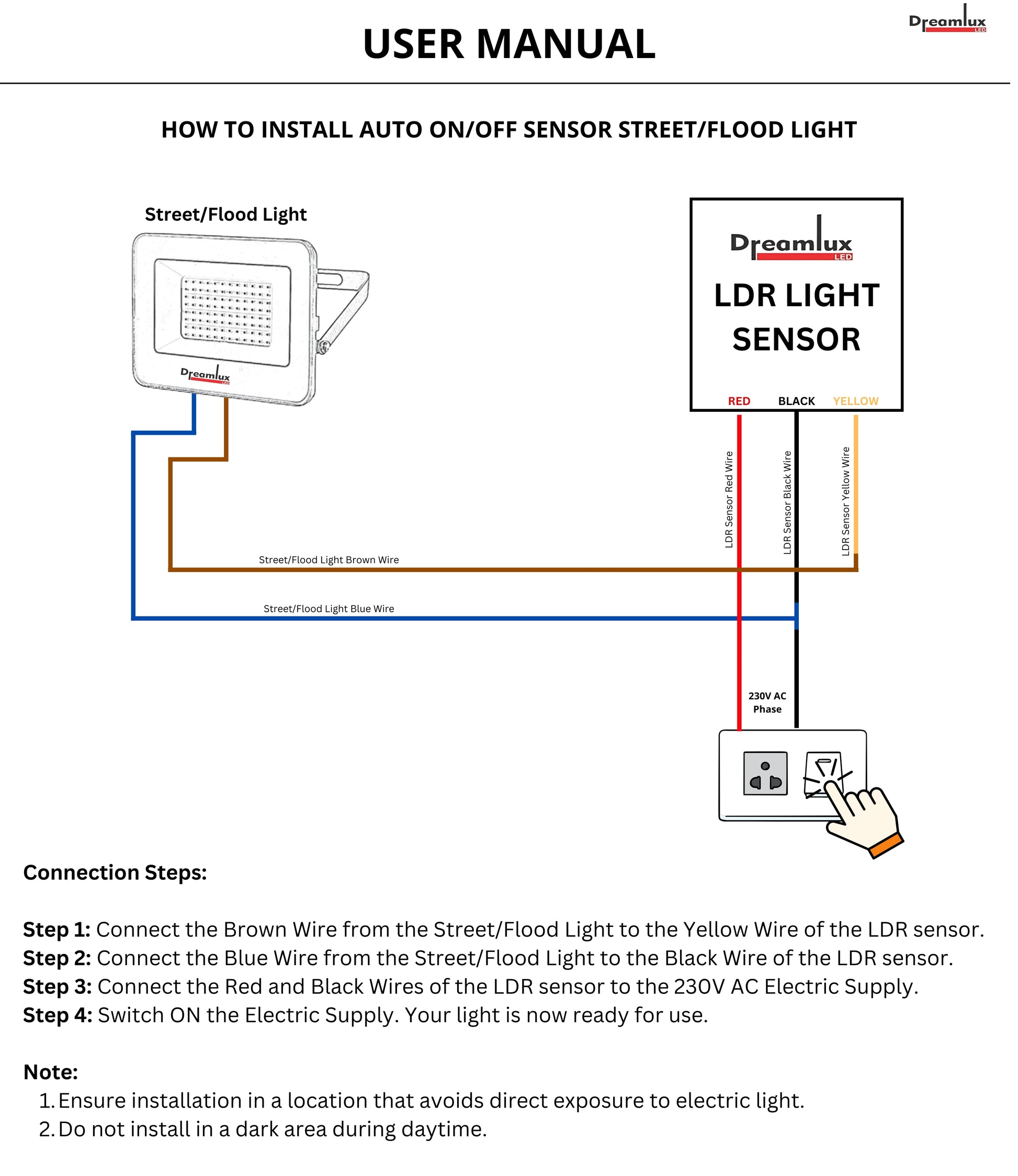 | Included Components | 60W LED FLOOD LIGHT WITH LDR SENSOR |