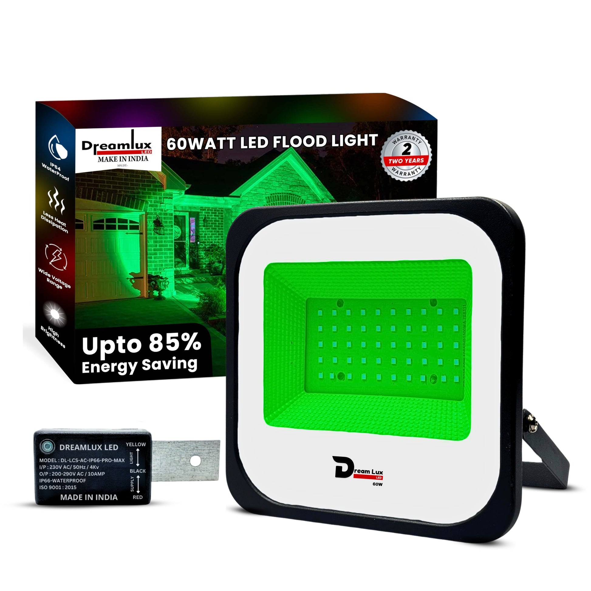 Dreamlux 60W Dusk to Dawn LED Waterproof Flood Light with Auto On/Off Day Night Sensor | BIS Approved | Aluminium Body, Color - Green