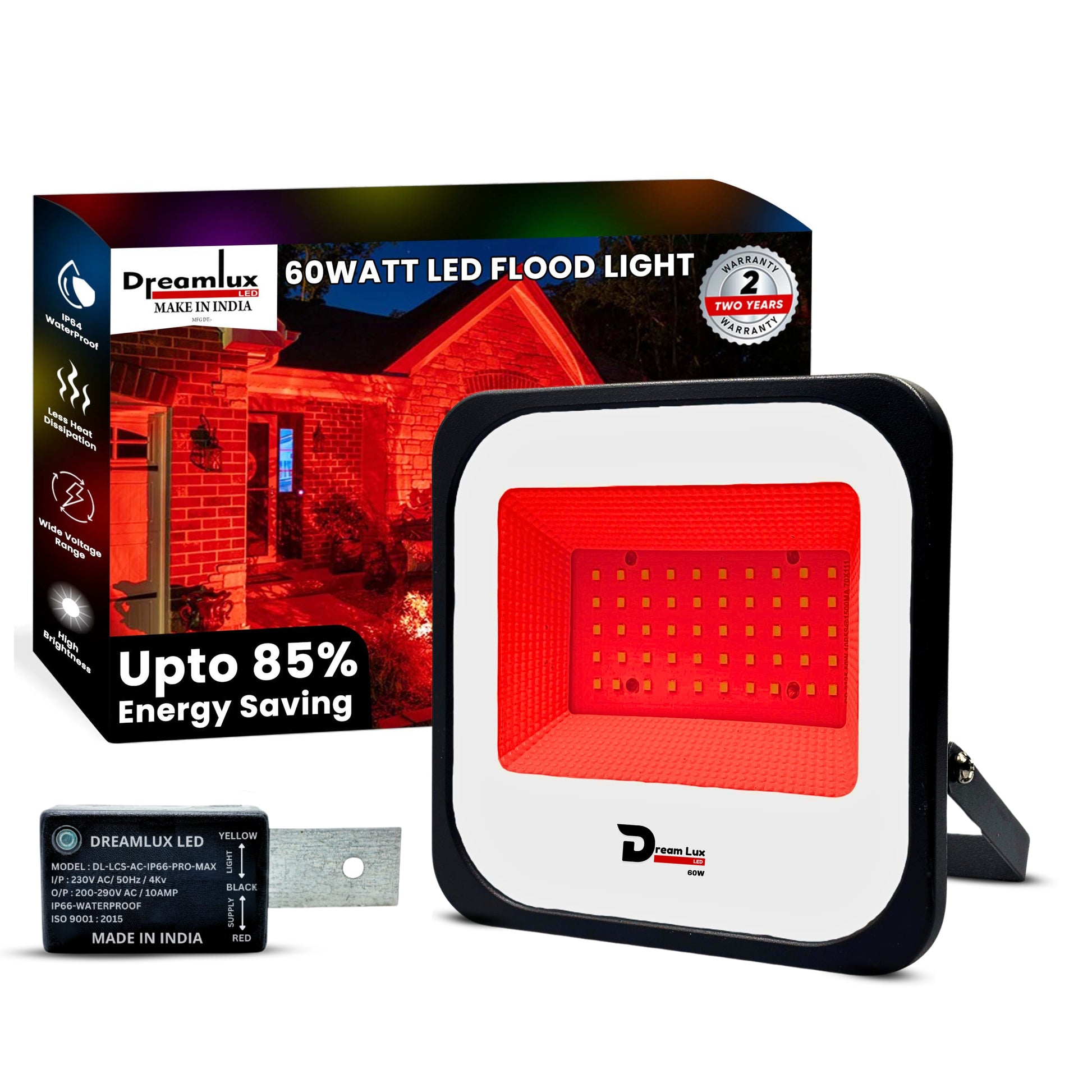 Dreamlux 60W Dusk to Dawn LED Waterproof Flood Light with Auto On/Off Day Night Sensor | BIS Approved | Aluminium Body, Color - Red