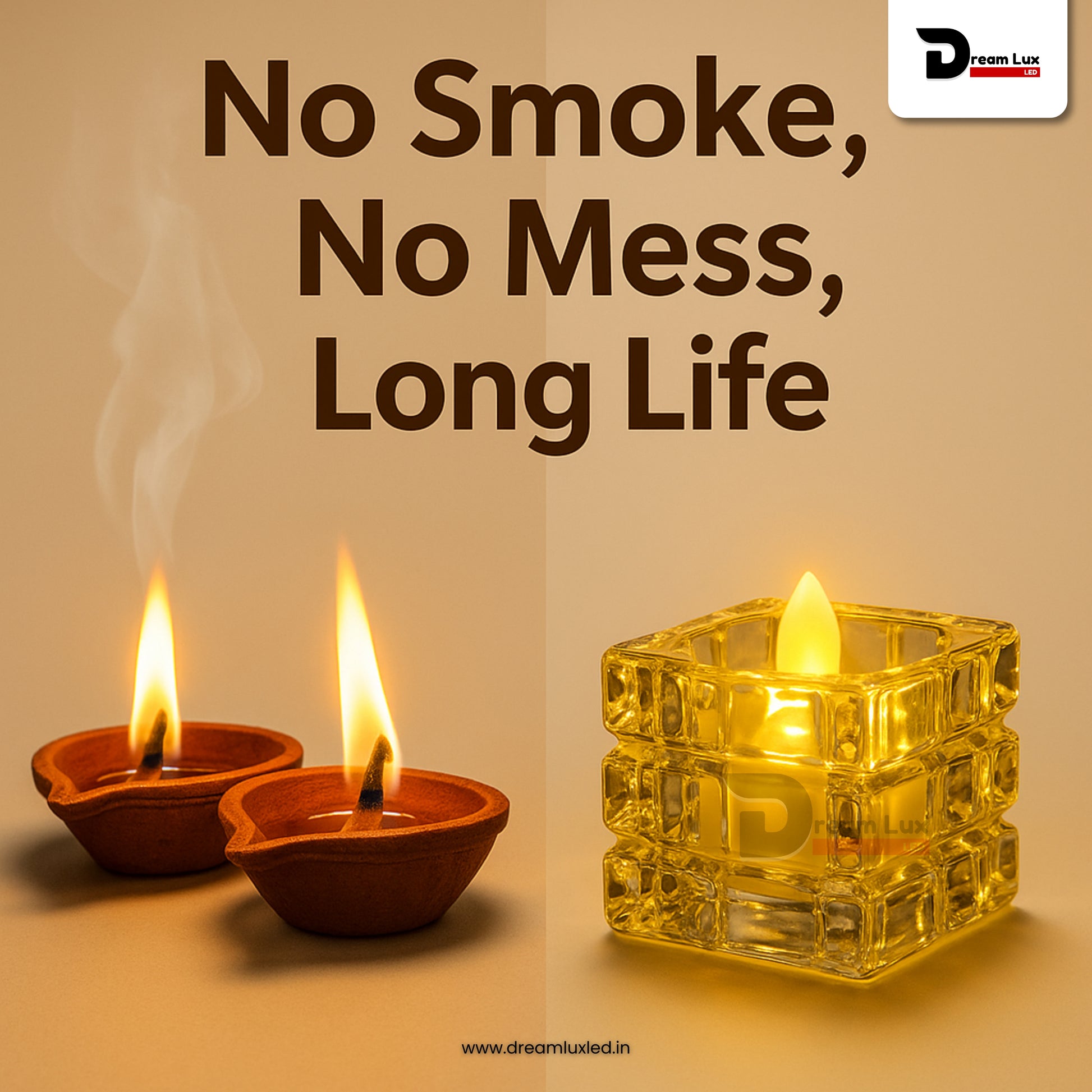 Bring home elegance and safety with Dreamlux Crystal Square Diyas – the perfect blend of traditional charm and modern convenience. Crafted with premium acrylic in a crystal-cut design, these LED flameless diyas create a warm, inviting glow that elevates your festive celebrations and home décor.Â